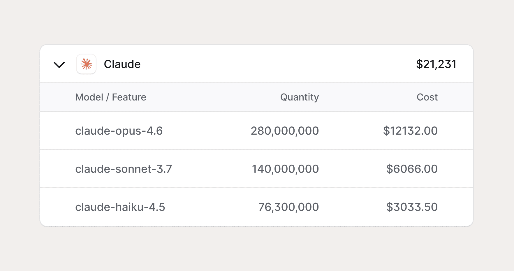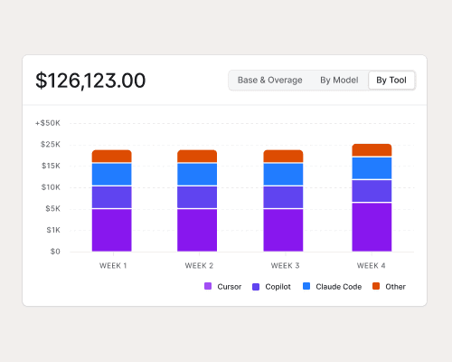 See AI usage and cost by team, individual, tool, and model. Compare patterns and understand where spend drives results.