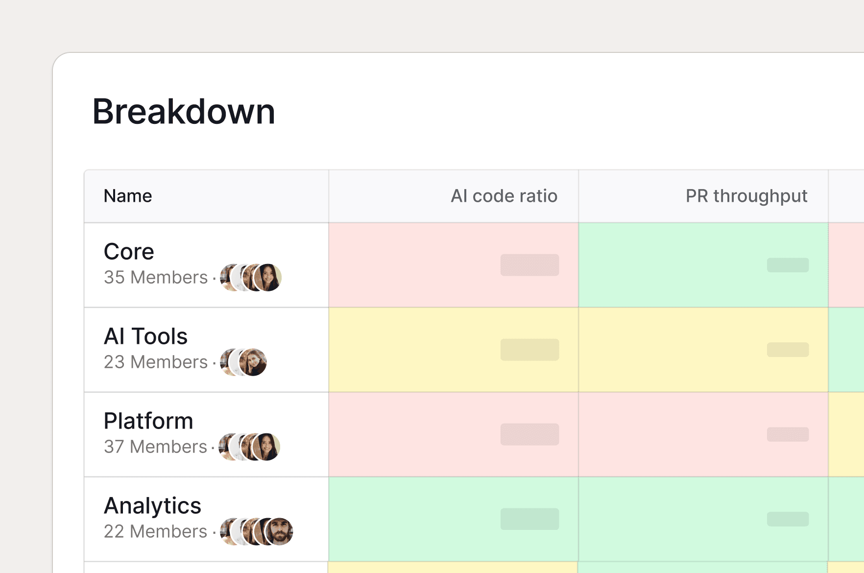 Get a trusted view of where AI contributes to production code, combining code-level analysis with traces from AI tools. No hard-coded ratios or proxy metrics.